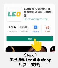Step.1 打開手機,搜尋鉅勝娛樂城app,點擊 「安裝」。
